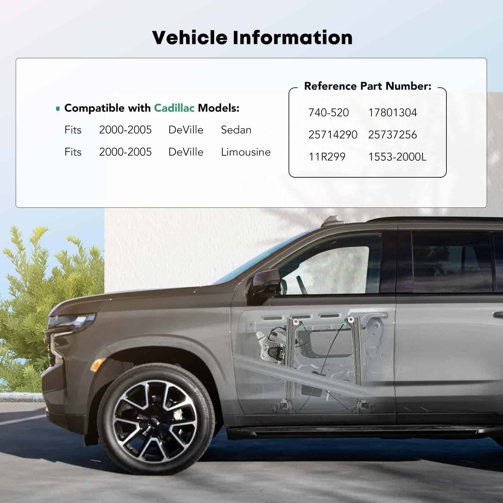 2. Ajuste perfecto: Nuestro regulador de elevación de ventana está diseñado para ser compatible con Cadillac DeVille Base 2000-2005 Sedán/Limusina/Cabina y Chasis, DeVille DTS 2000-2005 Sedán, DeVille DHS 2000-2005 Sedán.