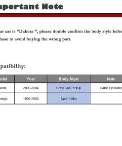 Garantía: Un Año de Garantía de Calidad ilimitada Fitment: Dodge Dakota Todas las Motorizaciones 2000-2004 Cabina de Tripulación Pickup Frontal Izquierdo con Cable Operado