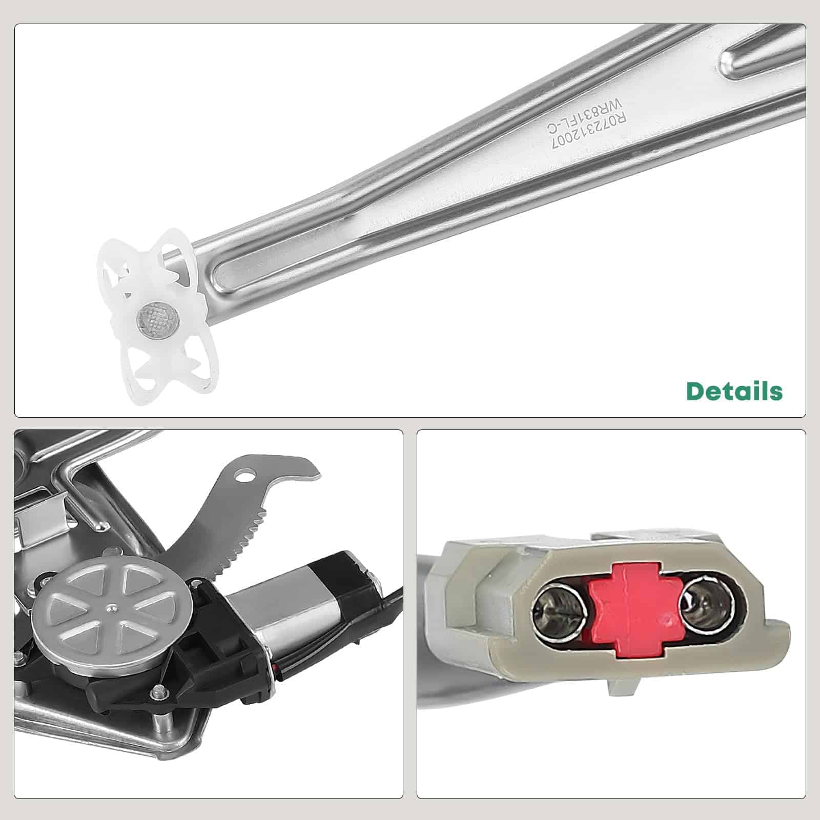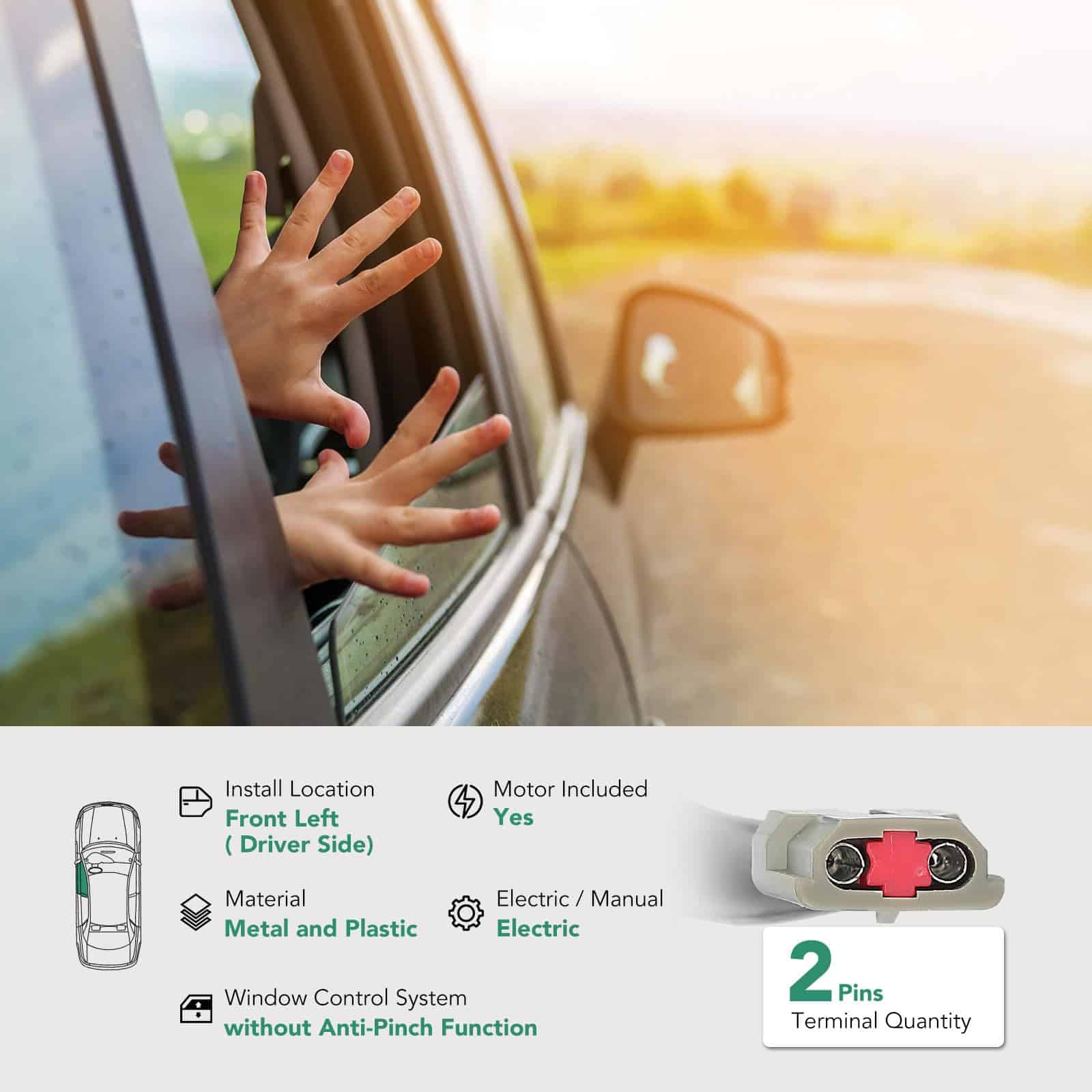1. Reemplazo avanzado: Obtendrá un Regulador de Ventana Eléctrico con Motor de 2 Pines (Sin Función Antipinzamiento); Posición de montaje: Delantero Izquierdo, Lado del Conductor; Material: Metal y Plástico para una fiabilidad duradera. El número de referencia de la pieza es 3L5Z1523395BA, 6L5Z1023201BA, ZZM159560B, 741-831.