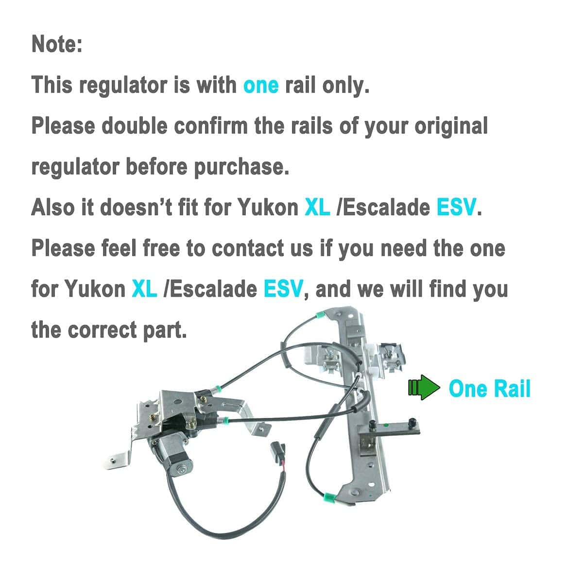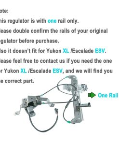 Regulador de ventana de YHTAUTO de reemplazo OEM, ajuste directo. Número OEM: 15135972, 19260050, 748-228. Ubicación: Trasero Izquierdo, Lado del conductor. Cantidad: Una pieza. Garantía: Un año de garantía de calidad ilimitada. Ajuste para Cadillac Escalade Base 2002-2005 V8 5.3L Sport Utility, Cadillac Escalade Base 2002-2006 V8 6.0L Sport Utility, Chevrolet Tahoe Base 2000-2001 V8 4.8L Sport Utility, Chevrolet Tahoe Base 2006 V8 4.8L Sport Utility, entre otros modelos compatibles.