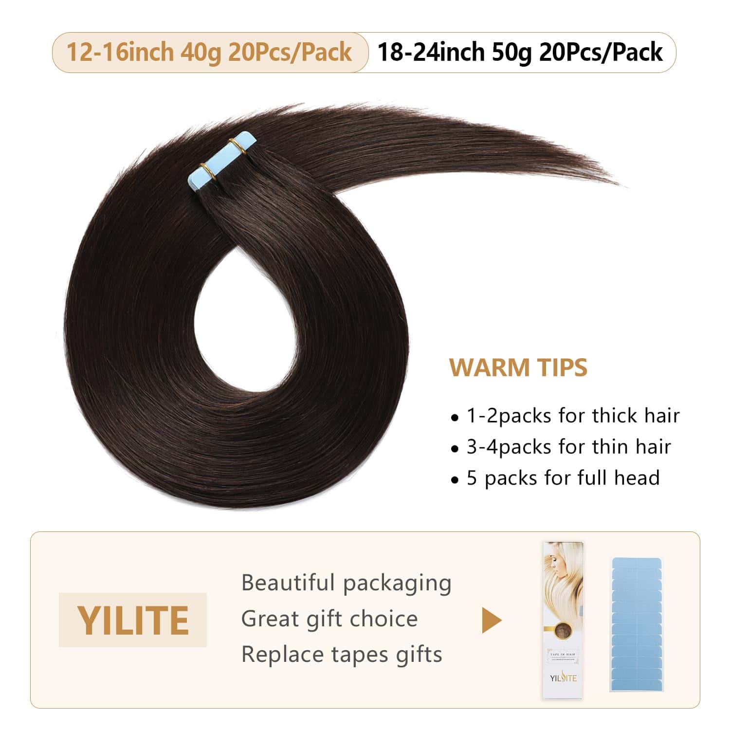 YILITE Extensiones de Cabello con Cinta en Color Negro