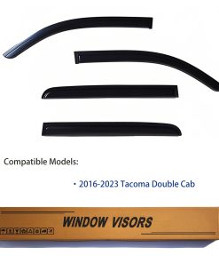 YLSCOO Window Visors Rain Guards son la solución perfecta para proteger su cabina del sol, minimizar el calor interior cuando está estacionado bajo el sol y prevenir el empañamiento de los espejos. Están diseñados para reducir el ruido del viento y el deslumbramiento durante la conducción nocturna. Además, le permiten disfrutar del aire fresco con las ventanas ligeramente abiertas en cualquier clima. Estos visores de ventanas están hechos de acrílico de alta calidad, resistente a los rayos UV y arañazos, y vienen con cinta 3M para una sujeción segura. No se necesita perforar ni herramienta especial para la instalación, lo que garantiza un proceso sin complicaciones. Proteja su vehículo y disfrute de una conducción más cómoda con los YLSCOO Window Visors Rain Guards para Tacoma Double Cab 2016-2023.