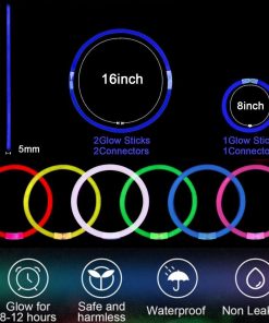 Recibirás 500 piezas de pulseras luminosas azules de 8 pulgadas con conectores, ideales para suministrar diversión adicional a tu celebración de fiesta con luces especial. Las barras luminosas estarán en su punto más brillante durante 6-10 horas después de la activación, para que puedas disfrutar de tu fiesta toda la noche sin preocuparte de que se desvanezcan. Las barras de neón están hechas de material de alta calidad impermeable que no es tóxico y vienen empaquetadas en una caja de cartón resistente para protección contra la luz y el calor. Cumplen con todas las normas de seguridad en Estados Unidos en cuanto a barras luminosas de fiesta. Conecta fácilmente las barras luminosas y utiliza los conectores para crear la forma que desees, ya sea pulseras o collares luminosos. Estos suministros para fiestas de neón están diseñados para ofrecer la máxima experiencia en fiestas luminosas con la posibilidad de utilizar las barras luminosas en diferentes juegos y actividades. Ideales para decoraciones de fiestas de neón, interiores o exteriores. Añade un toque de luz y diversión a tu evento con estas pulseras y collares luminosos azules.