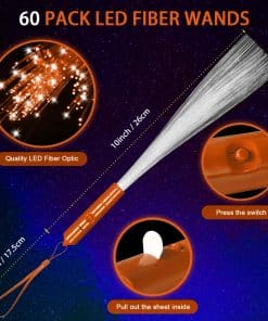 Suministros de fiesta brillantes: 60 varitas de fibra óptica LED naranjas en el paquete, son excelentes y novedosas adiciones para Halloween, Día de Acción de Gracias, bodas, noches de soltero o fiestas temáticas, hacen la fiesta fresca y le dan un toque luminoso al ambiente.