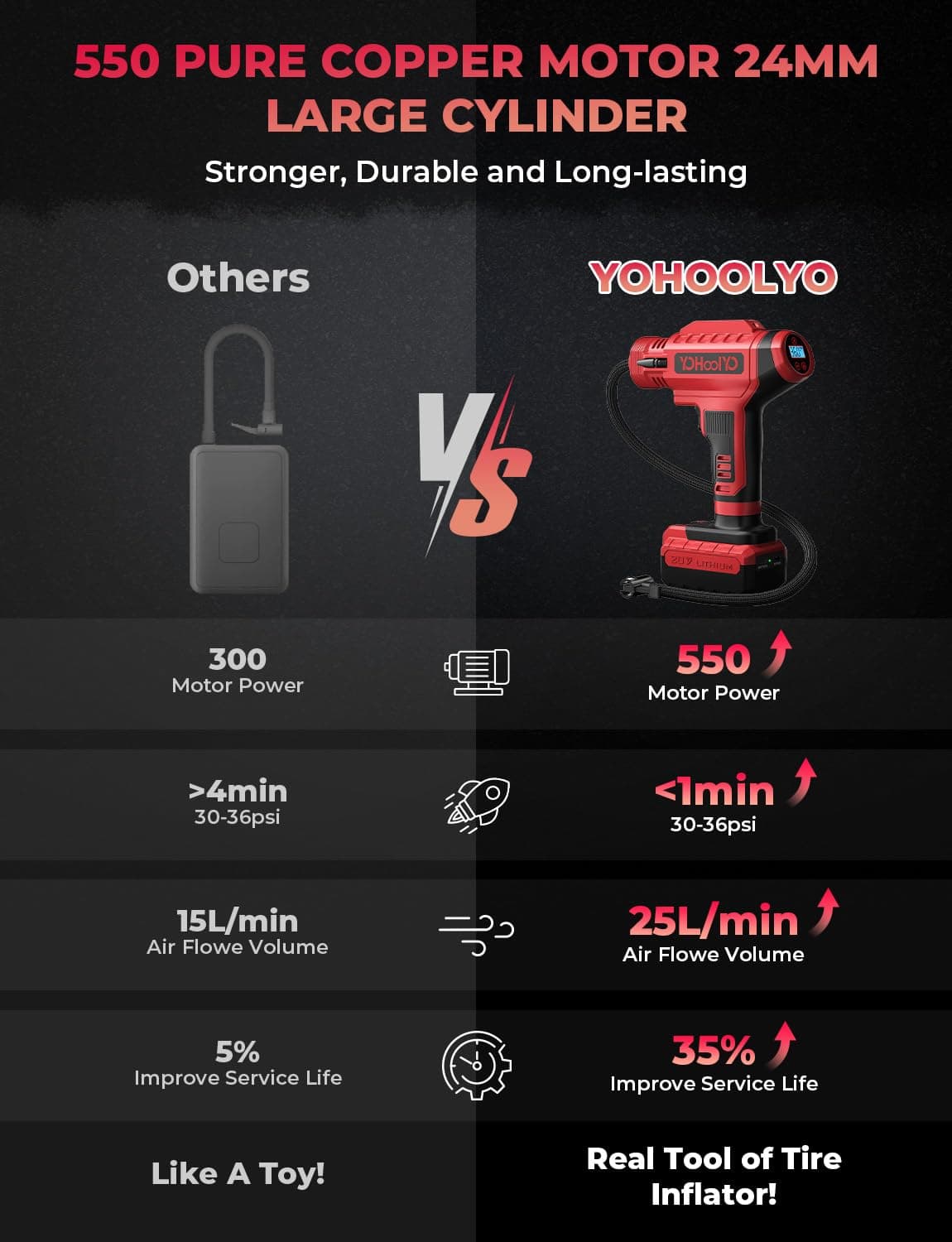 YOHOOLYO Inflador de neumáticos Compresor de aire portátil