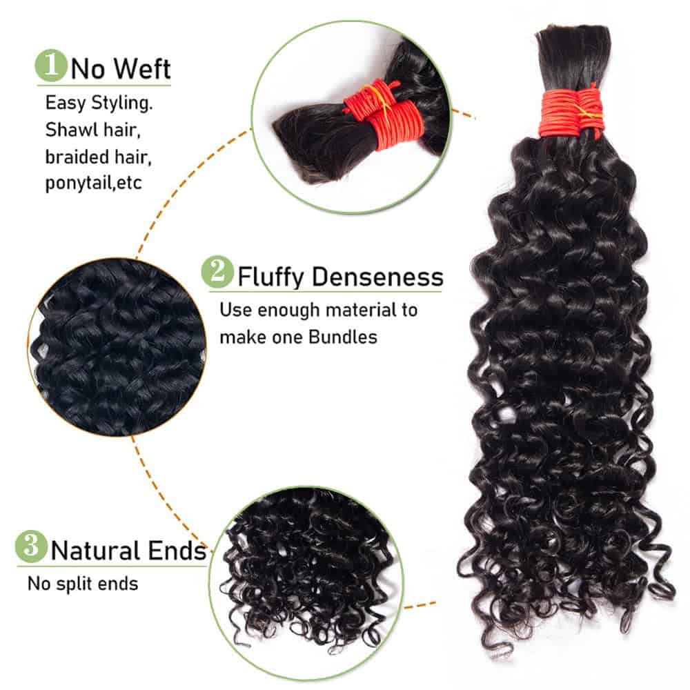1. Cabello Trenzado Humano Para Trenzas Boho Material: Cabello humano a granel de onda de agua para trenzar hecho de 100% cabello humano virgen brasileño, que proporciona un aspecto natural y auténtico. Se mezcla perfectamente con tu cabello y se ve más realista.