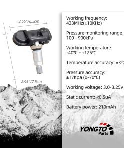 Yongtoparts Sensor TPMS 433MHz compatible con Mercedes Benz C250 CL550 AMG CLA250 CLK550 CLS550 ML350 E350 G500 SLK350 SL63 AMG SLS AMG Smart Fortwo Sprinter 4PCS Reemplaza OE 0009057200. Este sensor de monitoreo de presión de neumáticos es compatible con una amplia gama de vehículos Mercedes Benz, asegurando un rendimiento óptimo y una instalación sencilla. Las pruebas de fabricación garantizan la fiabilidad, durabilidad y seguridad del TPMS, así como una fácil programación. Con nuestro compromiso con la satisfacción del cliente, ofrecemos un año de servicio post-venta y tiempos de respuesta rápidos. ¡Asegure la seguridad de sus neumáticos con Yongtoparts!