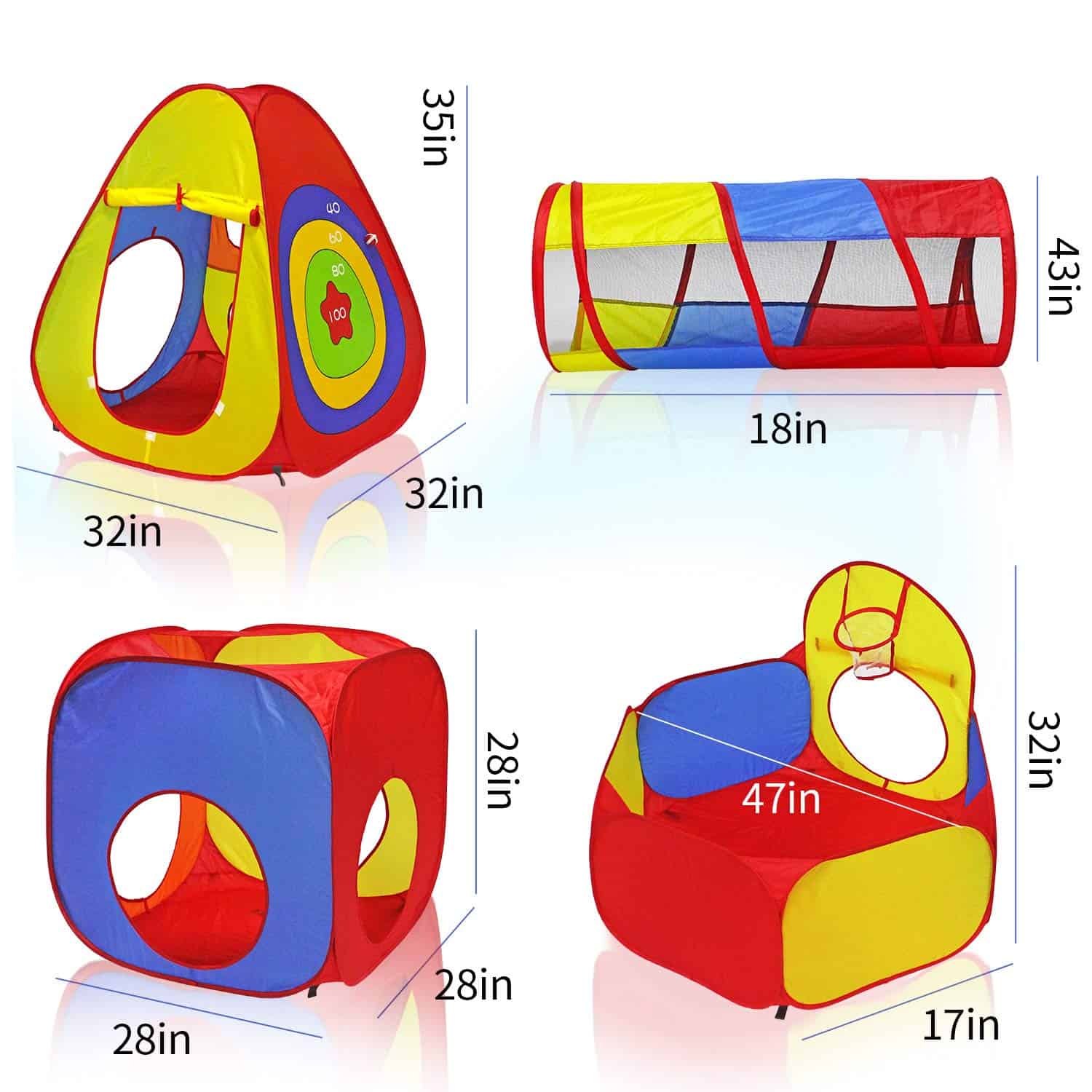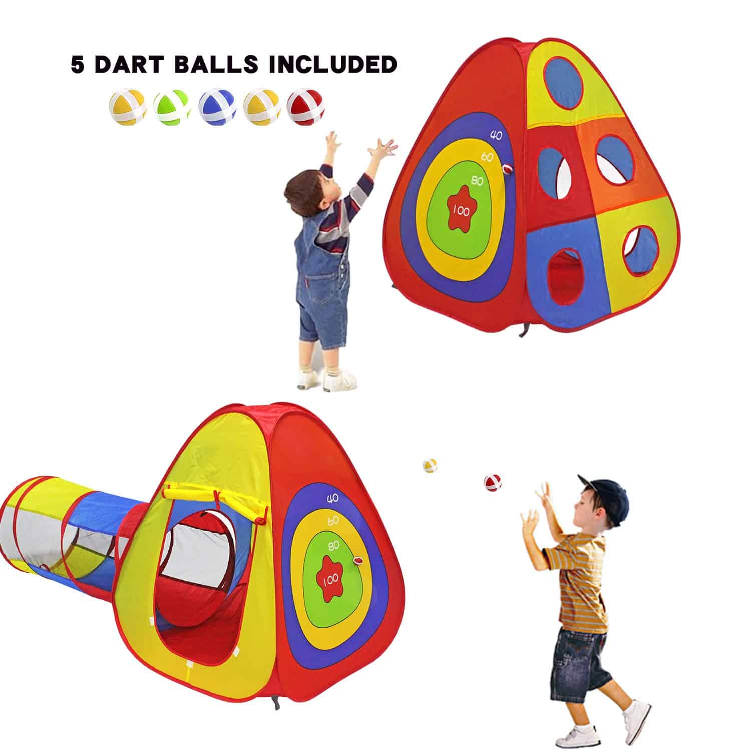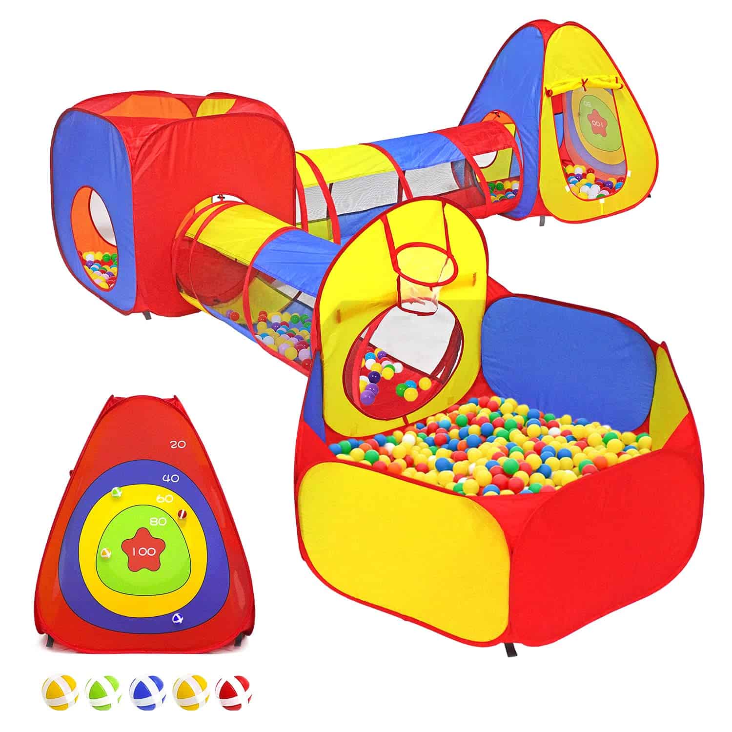 2. SUPER JUGABLE – El diseño de la tienda de campaña tiene cinco agujeros objetivo para permitir que los niños jueguen una variedad de juegos geniales. La tienda de campaña puede contener 300 bolas o más de 1000 bolas con un diseño de colores brillantes y se puede configurar en docenas de combinaciones diferentes. Puedes usarlo en fiestas, picnics, barbacoas en el patio trasero, parques, o simplemente colocarlo en la guardería.