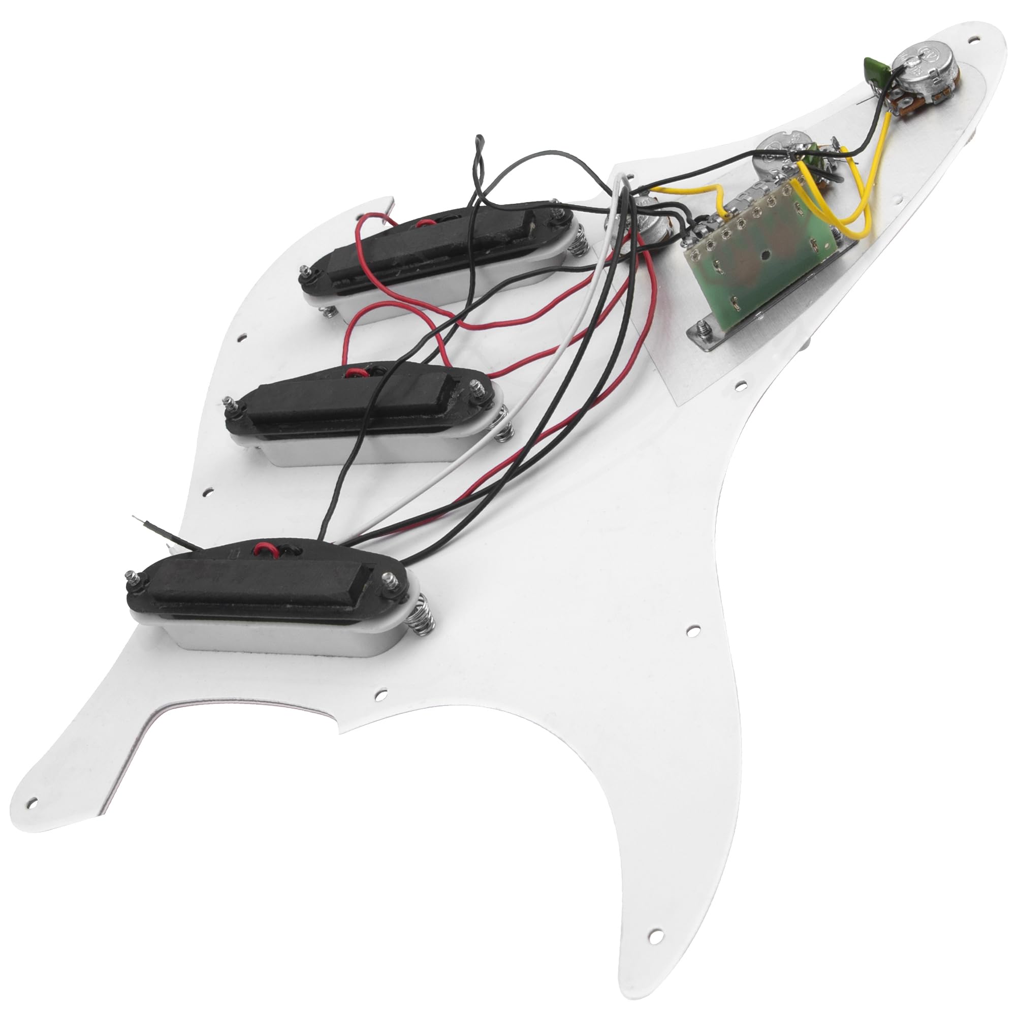 La pickguard sss es compatible con las Strats mexicanas/americanas standard Squier Fender, no con otros tipos de Strats. La pickguard cargada sss está hecha de material PVC, que es duradero y duradero. Pickguard de estilo Strat sss estándar de 11 orificios. La pickguard 3-Ply sss viene con pastillas de bobina simple (3), el interruptor es un interruptor selector de pastillas de 5 posiciones y el cableado es un control de volumen y 2 controles de tono. Hay capas de película protectora delgada en la superficie frontal de la pickguard, retire después de la instalación. 3 pastillas de bobina simple con imanes, 3-Ply 11 agujeros de tornillo en el lateral. Repuesto perfecto para sus guitarras, circuito pre-cableado. Producto Especificación: 100% Nuevo Material: Metal+PVC Color: Rojo Perla/Verde Claro/Blanco/Negro/Crema(Opcional) Peso: 320g/Conjunto Contenido del Paquete: 1 x Pickguard SSS 1 x Volumen 2 x Perillas de Control de Tono 3 x Pastillas de Bobina Simple 1 x Conjunto de Tornillos de Montaje Nota: 1. Si no está satisfecho con nuestro producto recibido, puede enviarnos correos electrónicos en cualquier momento. Le responderemos de inmediato y le ayudaremos a resolver su problema. 2. Debido a diferentes monitores, puede haber una pequeña diferencia de color.