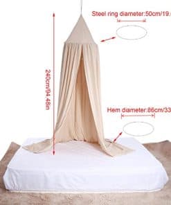 Características: 1. 100% nuevo, de alta calidad. 2. Anillo colgante en el centro. 3. Dosel de cama redondo, hermoso y funcional. 4. Decora la habitación de los niños/bebés. 5. Para renovar la habitación de una niña o un niño o una remodelación del dormitorio. Especificaciones: Color: Caqui Material: tela de algodón. Tamaño del producto: altura: 2.4m; diámetro del domo: 0.6m; parte inferior: 1.4m Lista de paquetes: 1 x Dosel de Mosquitera de Malla