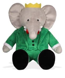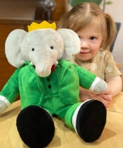 El muñeco oficial de Babar está vestido con su icónico traje verde, pajarita roja de satén y corona de fieltro dorado, tal como se representa en los libros escritos por Jean y Laurent de Brunhoff. Confeccionado con materiales de alta calidad, este peluche tiene un pelaje excepcionalmente suave que los niños adoran abrazar.