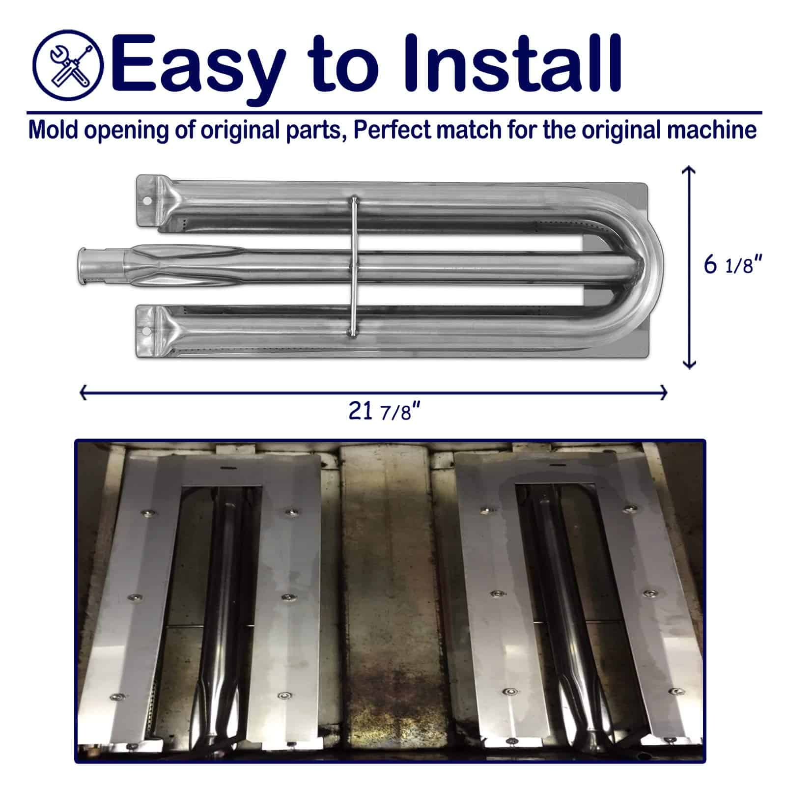 Además, este quemador viene con soportes de montaje que le permiten convertir fácilmente parrillas Viking antiguas que usaban quemadores de hierro fundido, para poder cambiar a los quemadores de acero inoxidable. Los soportes se instalan de manera sencilla y garantizan un ajuste seguro para una operación sin problemas.