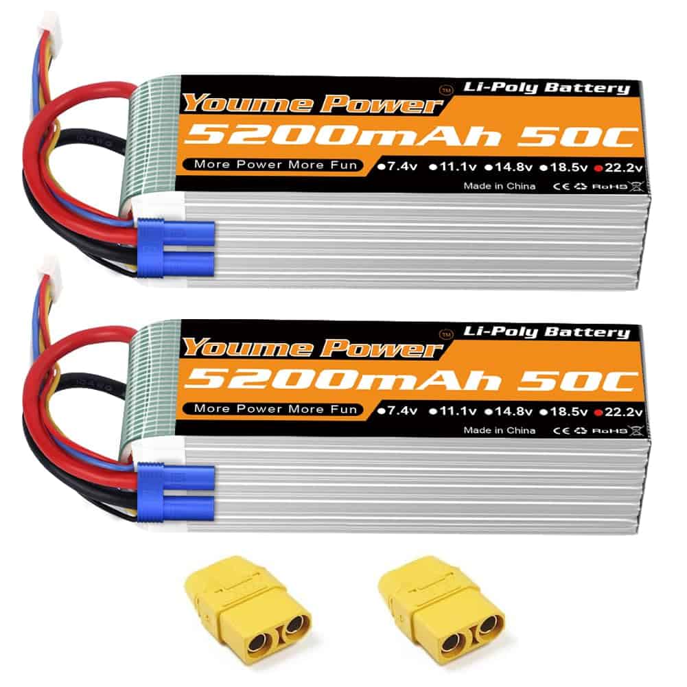 Youme 2 Paquetes 6s RC Lipo, Batería Lipo 22.2V 5200mAh 50C