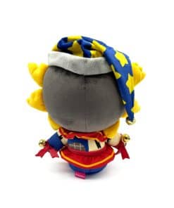 La perfecta amalgama del día y la noche, Eclipse está aquí para acompañarnos en su debut como peluche Youtooz! Con una mezcla de las caras y cuerpos de Sol y Luna fusionados, el favorito vigilante de la guardería mide 9 pulgadas de alto, con las piernas estiradas hacia adelante, le falta un pie derecho y viste pantalones azules rasgados sostenidos por un cinturón rojo flanqueado por un volante fruncido. Su torso es una mezcla de Sol en el lado derecho, con una parte superior amarilla suave, y el lado izquierdo es una malla oscura y tela azul al estilo de Luna, mientras que en sus muñecas cuelgan cascabeles amarillos unidos por tela roja. La sonrisa más linda cruza su cara dividida mientras los triángulos amarillos que rodean su cabeza están raspados y faltan, mientras que un gorro para dormir con estampado de estrellas se asienta cómodamente en su cúpula. Este peluche está repleto de algodón 100% PP y está hecho de una mezcla de materiales minky normales y sublimados, absolutamente perfecto para abrazar o trabajar tu turno en la guardería.