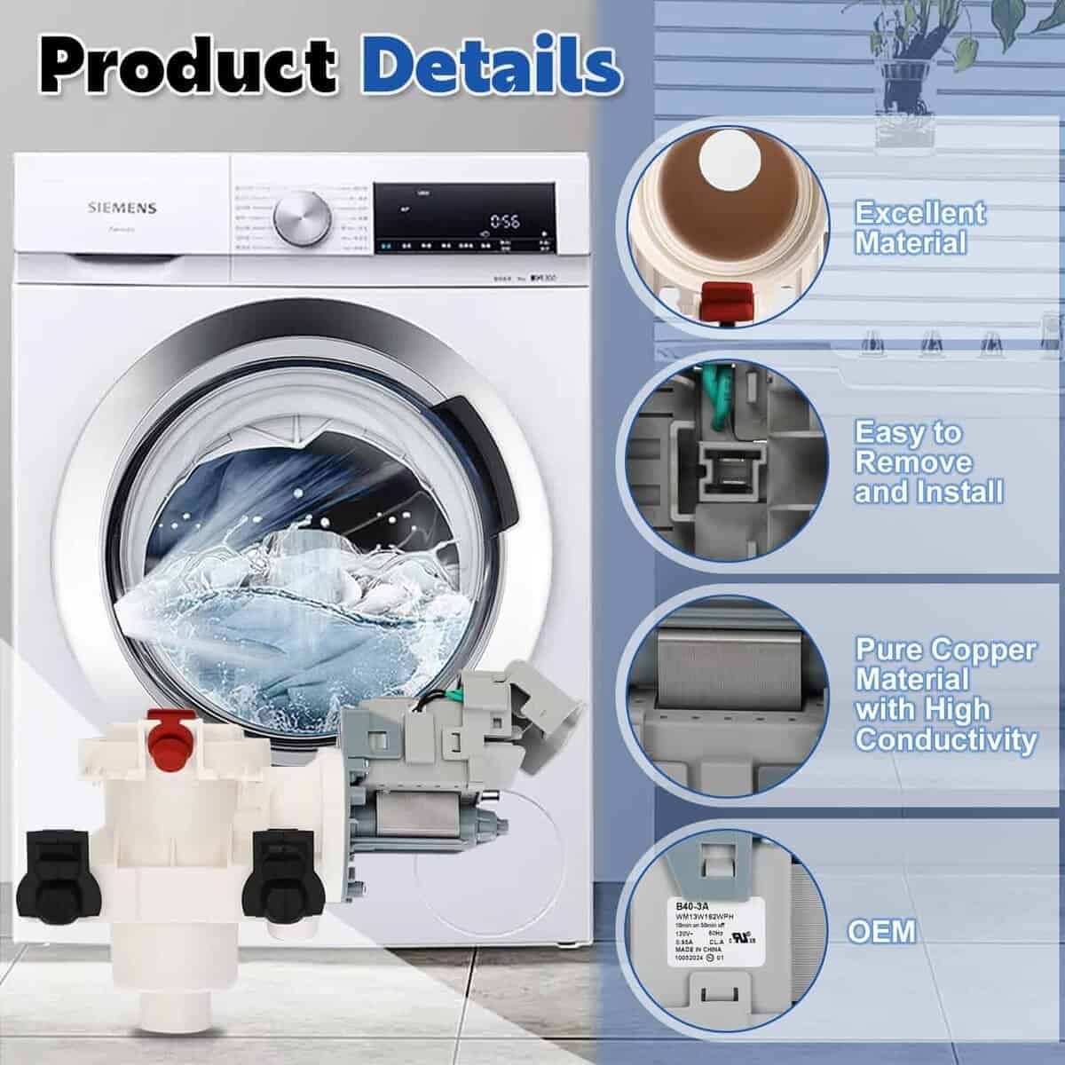 3. Marcas Compatibles La bomba de drenaje es compatible con lavadoras Whirlpool, Maytag, Kenmore, Amana, KitchenAid, ofreciendo un ajuste perfecto y un rendimiento confiable. Esta bomba de drenaje 280187 de reemplazo está diseñada para igualar las especificaciones del equipo original, asegurando que cumpla o supere los estándares del fabricante. Con su diseño preciso y construcción robusta, la bomba de drenaje de lavadora de carga frontal es ideal tanto para entusiastas del bricolaje como para técnicos de reparación profesionales que buscan una pieza de reemplazo confiable.