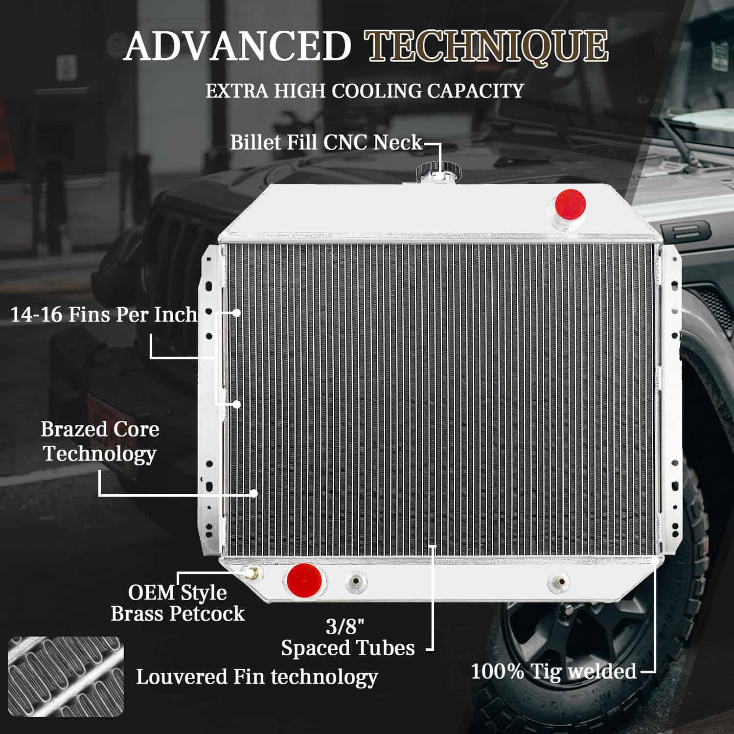 YUFUQIDA Radiador de aluminio de 3 núcleos DPI433 CU433 RAD433 compatible con 1966-1979 67 68 69 70 71 72 73 74 75 Ford F100 F150 F250 F350 Bronco Truck Pickup V8 Engine Radiador de repuesto El Radiador YUFUQIDA está diseñado para ofrecer máxima eficiencia de enfriamiento para su camioneta Ford F100 F150 F250 F350 Bronco. Hecho con aluminio de grado AA5052 de avión completo, este radiador garantiza una durabilidad excepcional y rendimiento confiable. Con un diseño de alto rendimiento y un enfriamiento mejorado en un 35-45% de temperatura, este radiador es ideal para mejorar la capacidad de enfriamiento de su motor. Gracias a su artesanía de soldadura de punta y aprobación CE, este radiador cumple con los más altos estándares de calidad y rendimiento. La instalación es sencilla y directa, ofreciendo un ajuste OEM perfecto y una mayor capacidad de refrigerante que los radiadores de fábrica. Con una garantía de 12 meses, puede estar seguro de la calidad y fiabilidad de este radiador YUFUQIDA para su camioneta Ford. ¡Mejore el rendimiento de enfriamiento de su motor con este radiador de aluminio de 3 núcleos YUFUQIDA!