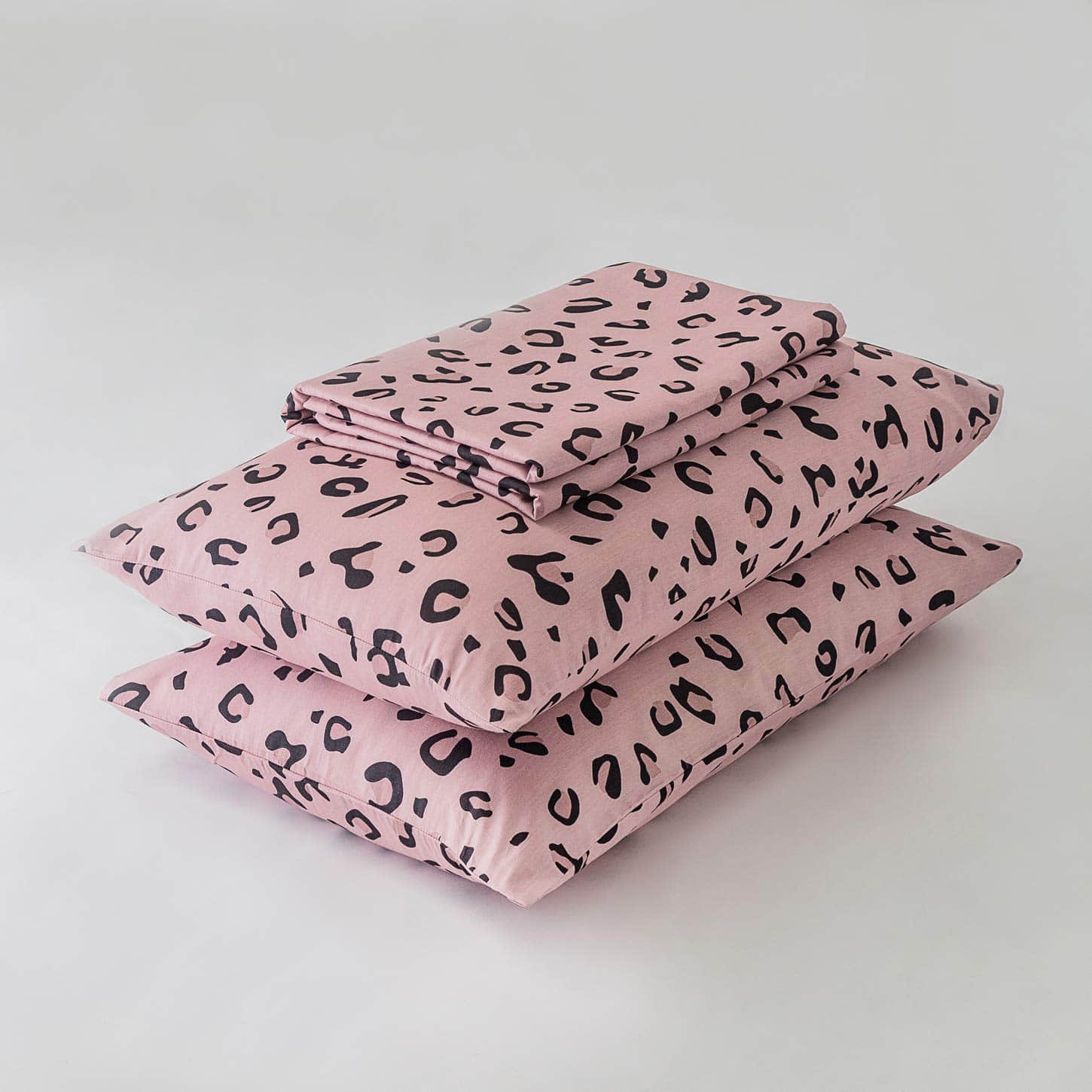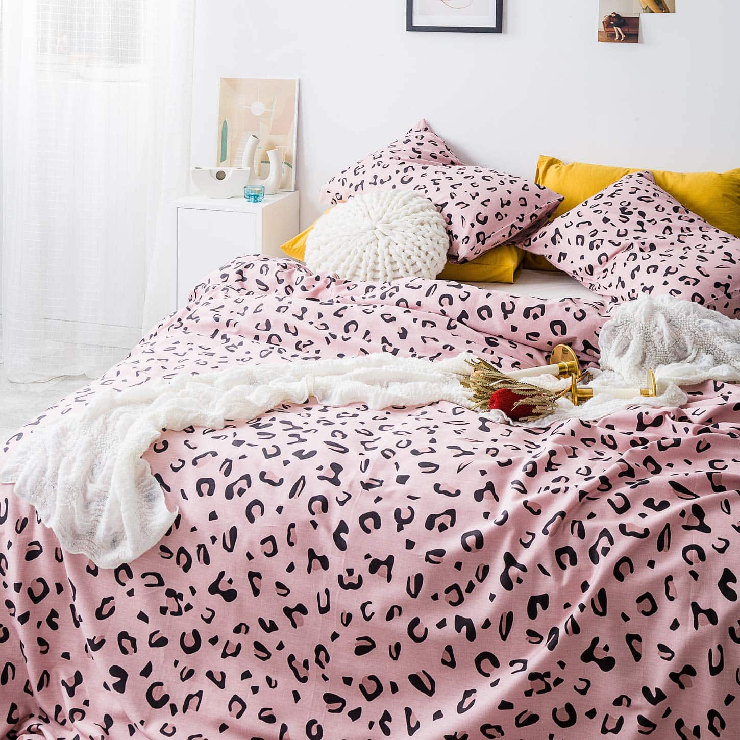 1. Tejido de Calidad Hecho de 100% algodón, suave, transpirable, ligero, que absorbe la humedad y fácil de cuidar. Después de un proceso de tejido de alta densidad, lo hace cómodo y duradero. El material premium proporciona una gran experiencia de sueño. 2. Diseño Elegante Estampado de leopardos y cheetah rosados salvajes, ofreciendo a tu habitación colores brillantes y elementos decorativos vívidos, este estampado novedoso e interesante puede ser adecuado para muchos estilos de decoración. También es un regalo de cumpleaños o Navidad ideal para mujeres, niñas, y tu familia y amigos. 3. Juego de 3 Piezas de Funda de Edredón El conjunto de tamaño King incluye 1 funda de edredón de 104 x 90 pulgadas y 2 fundas de almohada de 20 x 36 pulgadas (edredón no incluido). 4. Uso Conveniente Cierre con cremallera oculta, fácil de poner el inserto del edredón dentro o fuera. 4 lazos en las esquinas para asegurar tu edredón o edredón en su lugar firmemente. Diseño de cierre de sobre para la funda de almohada, fácil de reemplazar la almohada. 5. Lavado y Cuidado Se recomienda lavar a mano o a máquina en agua fría, ciclo suave. Lavar con colores similares. No limpiar en seco. No usar lejía. Secar en secadora a baja temperatura. Planchar en frío si es necesario.