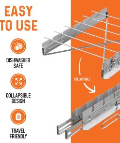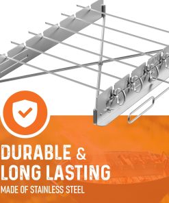 3. Fácil de Limpiar y Almacenar – Esta construcción de acero inoxidable es fácil de limpiar. Todos los componentes son aptos para lavavajillas. Fácilmente plegable, esta parrilla de kebab se encoge y se puede almacenar hasta la próxima fiesta de barbacoa.