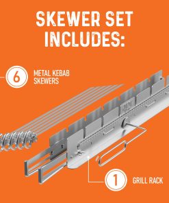 1. Set de Espetos de Kebab – Perfecto para cualquier BBQ, este accesorio para asar a la parrilla incluye seis espetos de metal y un soporte de parrilla plegable de acero inoxidable. Perfecto para acampar, usa este set de kebab con parrillas de gas, eléctricas y de carbón. ¡Prepara tu parrilla!
