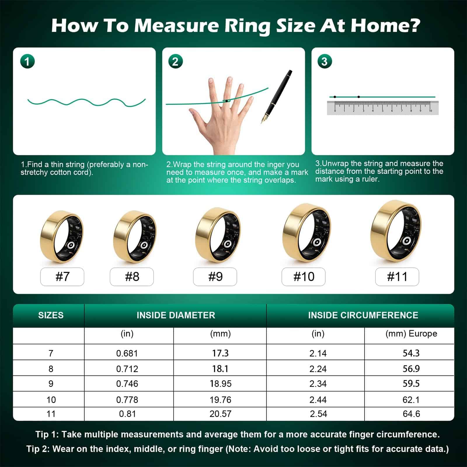 YULUCKGO Smart Ring Fitness Tracker para Mujeres y Hombres