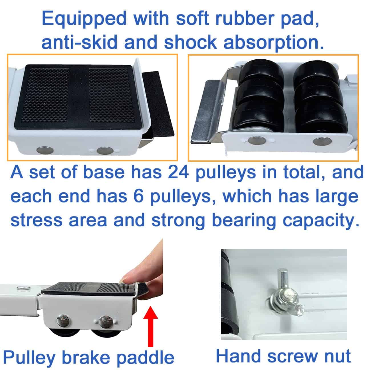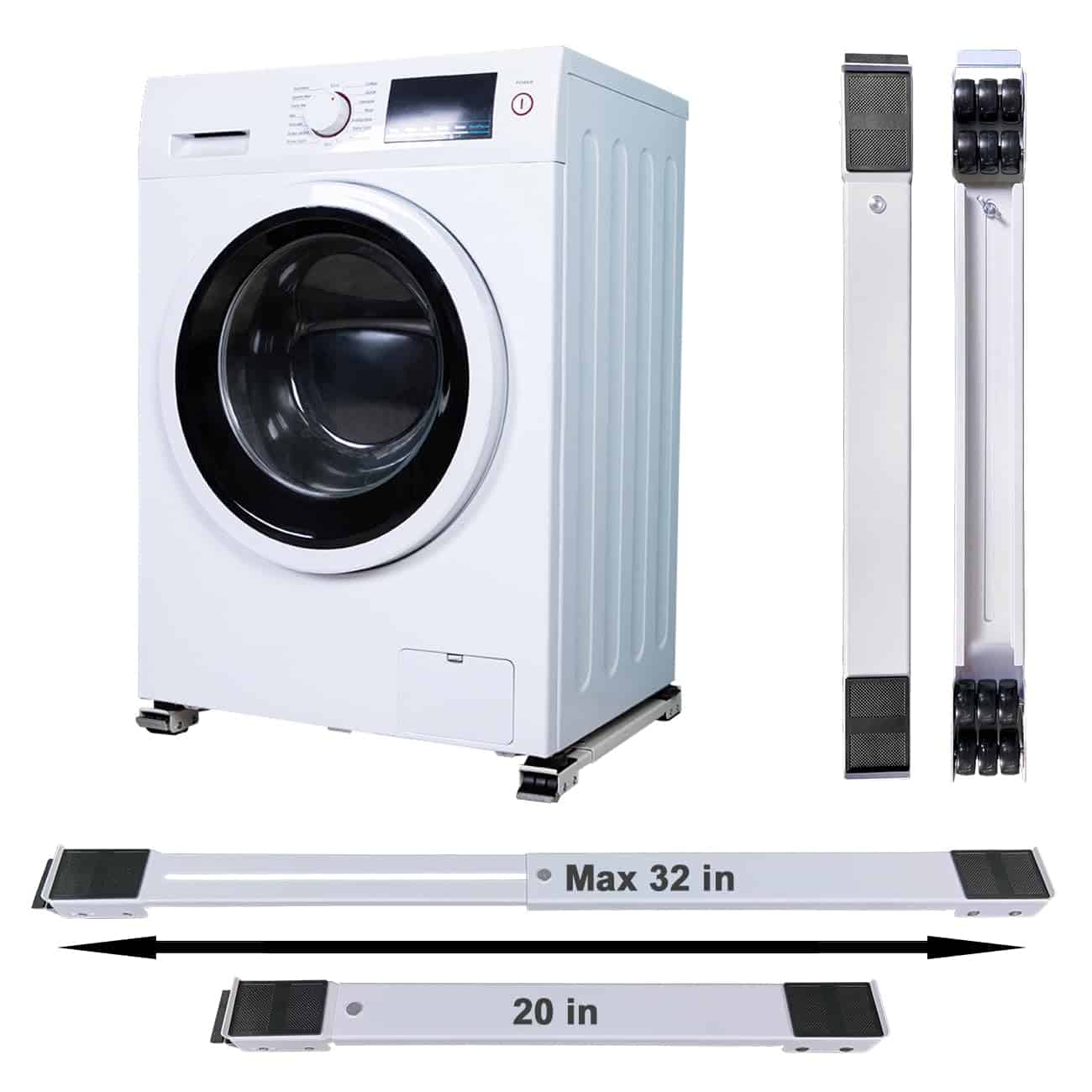 Ampliamente utilizado para el movimiento de electrodomésticos pesados y muebles como unidades apiladas de lavadora y secadora, refrigeradores, lavadoras y secadoras. Base de lavadora, fácil de instalar, capaz de soportar 300kg