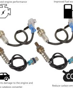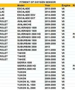 1. Número de Pieza de Repuesto 234-4668 234-4256. 2. Paquete Incluye 4 x Sensores de Oxígeno. 3. Aplicación de Reemplazo para Chevrolet Avalanche 2013-2008 5.3L, Avalanche 2009-2008 6L, Silverado 1500 2013-2009 6.2L, Silverado 1500 2013-2008 6L, Silverado 1500 2013-2008 5.3L, Silverado 1500 2013-2008 4.8L. 4. Aplicación de Reemplazo para Chevrolet Silverado 2500 Hd 2011-2008 Pickup 6L, Silverado 3500 Hd 2011-2008 Pickup 6L, Suburban 1500 2014-2008 5.3L, Suburban 1500 2009-2008 6L, Suburban 2500 2013 6L, Suburban 2500 2011-2008 6L. 5. Aplicación de Reemplazo para Chevrolet Tahoe 2014-2008 5.3L, Tahoe 2013-2008 6L, Tahoe 2009-2008 6.2L, Tahoe 2009-2008 4.8L. 6. Aplicación de Reemplazo para Gmc Sierra 1500 2013-2008 6L, Sierra 1500 2013-2008 6.2L, Sierra 1500 2013-2008 5.3L, Sierra 1500 2013-2008 4.8L, Sierra 2500 Hd 2011-2008 Pickup 6L, Sierra 3500 Hd 2011-2008 Pickup 6L. 7. Aplicación de Reemplazo para Gmc Yukon 2014-2008 6.2L, Yukon 2014-2008 5.3L, Yukon 2013-2008 6L, Yukon 2009-2008 4.8L, Yukon Xl 1500 2014-2008 6.2L, Yukon Xl 1500 2014-2008 5.3L, Yukon Xl 1500 2009-2008 6L, Yukon Xl 2500 2013-2008 6L. 8. Aplicación de Reemplazo para Cadillac Escalade 2013-2009 6L, Escalade 2014-2008 6.2L, Escalade Esv 2014-2008 6.2L, Escalade Ext 2013-2008 6.2L. 9. Precauciones Por favor verifique la información de su vehículo con el Garage de Compatibilidad (marca, modelo y nivel de acabado) y el número OEM antes de la compra. Se ajustará a su vehículo cuando el enchufe, la longitud y la posición sean iguales a los de su sensor de oxígeno original. 10. Instalación Fácil Los Sensores de Oxígeno reemplazan sin problemas los componentes existentes en sus posiciones de instalación originales, sin necesidad de modificaciones. La instalación se simplifica en su vehículo, facilitada por hilos pre-recubiertos que contribuyen a un proceso de instalación suave y eficiente.