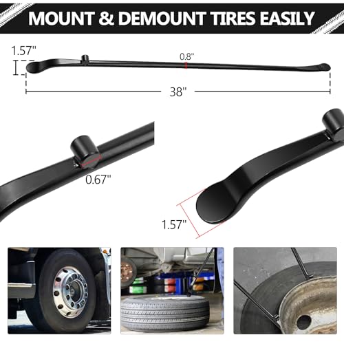 1. 2 PCS Tire Mount and Demount Iron – Este kit de cambiador de neumáticos incluye un montaje y desmontaje de hierro de 38 pulgadas, proporcionando un rango de trabajo más grande y haciendo que sea más fácil cambiar neumáticos en vehículos con neumáticos más grandes.