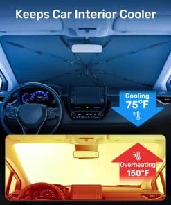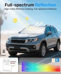 1. Protección Solar y Aislamiento Térmico Superior: Esta sombra de sol está fabricada con materiales de protección solar premium y aislamiento térmico de doble capa, bloqueando eficazmente el 99% de los rayos UV dañinos. Reduce drásticamente las temperaturas interiores en un 50%, protegiendo tu coche del calor abrasador y manteniéndolo fresco y comfortable. ¡Dile adiós a las largas esperas en el calor del verano y disfruta de una experiencia de conducción refrescante incluso en los días más calurosos!.