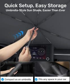 Protección solar superior y aislamiento térmico Esta sombra de sol está elaborada con materiales premium de protección solar y aislamiento térmico y de doble capa, bloqueando eficazmente el 99% de los rayos UV dañinos. Reduce drásticamente las temperaturas interiores en un 50%, protegiendo tu coche del calor abrasador y manteniéndolo fresco y cómodo. Despídete de las largas esperas en el calor del verano y disfruta de una experiencia de conducción refrescante incluso en los días más calurosos!. Ajuste perfecto con cuatro opciones de tamaño Elige entre cuatro tamaños actualizados, diseñados con un borde de muelle flexible que permite un ajuste de 4-8 pulgadas, proporcionando un ajuste ceñido y de cobertura completa. La sombra de sol se adapta perfectamente a varios parabrisas y formas de salpicadero, asegurando que cada esquina esté perfectamente protegida. Materiales y diseño mejorados para un uso duradero El modelo 2025 está actualizado con varios materiales premium de alta resistencia y diseño innovador, creando un producto excepcionalmente duradero y potente. Incluso cuando se expone a entornos hostiles durante períodos prolongados, evita eficazmente el daño, prolonga su vida útil y proporciona una protección solar y aislamiento térmico duraderos. Protección interior integral Con su diseño protector definitivo y ajuste de cobertura total, esta sombra de sol protege eficazmente contra la luz solar directa, evitando que el volante, los asientos y el salpicadero se sobrecalienten o envejezcan. Disfruta de una protección duradera y completa para el interior de tu coche. Configuración rápida y almacenamiento fácil Gracias a su diseño estilo paraguas, la instalación y la retirada solo tardan 3 segundos. Viene con una bolsa de almacenamiento compacta, lo que facilita guardarlo en cualquier espacio sin ocupar espacio adicional. ¡Conveniencia y eficiencia, todo en uno! Diseño de varilla giratoria suave de 360° para un uso flexible El mango de la sombrilla, fabricado con material PP duradero, cuenta con una rotación de 360 grados y un diseño flexible. Admite de forma segura la colocación en salpicaderos, sobre pantallas o detrás de monitores sin rayar ni dañar el interior. Disfruta de la máxima flexibilidad y tranquilidad. Protección de privacidad para paradas tranquilas Bloqueando eficazmente las vistas exteriores, esta sombra de sol garantiza privacidad máxima. Ya sea estacionado o tomando un descanso rápido, crea un espacio personal más fresco, cómodo y seguro, brindándote tranquilidad en todo momento. Lo que recibes Recibirás una sombra de sol de alta calidad que garantiza un viaje fresco y cómodo. Además, ZANCH ofrece soporte a largo plazo y asistencia las 24 horas. ¡Elige ZANCH para una experiencia de conducción excepcional!