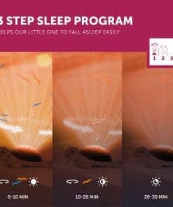 Tim the Turtle ofrece un brillo tranquilo y acompaña a los niños a la hora de dormir ya que tiene música del atardecer africano, canciones de cuna o sonido de latidos para crear un entorno mágico y tranquilo. Este adorable compañero nocturno transforma viveros y habitaciones en tierras de maravillas con música relajante. Mientras no estás constantemente cerca de tu hijo por la noche, nuestro detector de llanto perspicaz reactivará a Tim al llanto. Esto ayuda a que tu hijo se calme y vuelva a dormirse. Tim se apaga automáticamente después de 30 minutos. El movimiento, el sonido y la luz se reducen al desvanecer gradualmente la animación en 3 etapas con intervalos de 10 minutos cada uno para permitir que el niño se relaje y se duerma profundamente. Presiona el botón para encender/apagar la lámpara. Está hecha de material 100% seguro para bebés sin BPA. Tim es increíblemente resistente, de tamaño portátil que funciona con pilas y es apto para niños para usar en la hora de jugar o en la hora de dormir. Los LEDs de larga duración que no se calientan y un niño puede colocar de forma segura la luz nocturna brillante cerca de su cuna o en su cama.