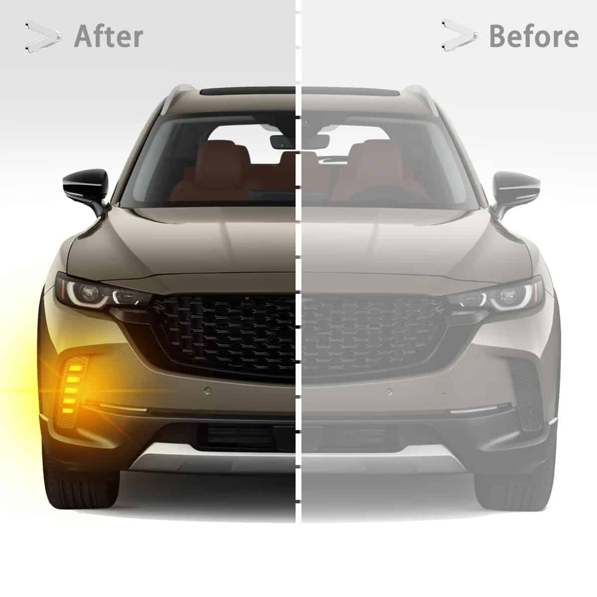 Adáptese perfectamente al recorte OEM del parachoques delantero de Mazda CX-50 2023 2024 2025. Esta actualización incluye luces de circulación diurna y luz de señal de giro secuencial ámbar, lo que mejora la apariencia del automóvil y aumenta el efecto de advertencia para los transeúntes. El recorte del parachoques ha sido tratado con oxidación superficial, lo que resulta en una apariencia atractiva combinada con una excelente resistencia a los golpes y al agua. Está construido para resistir los rigores del uso diario y diversas condiciones climáticas. Utiliza chips LED de alta calidad, PCB de buena disipación de calor y lente de ABS ahumado anti envejecimiento, las luces de señal de giro dinámico secuencial son de ahorro de energía con una vida útil más larga. También proporcionamos garantía de 12 meses. Si hay algún problema, contáctenos y le brindaremos una buena solución en 24h.