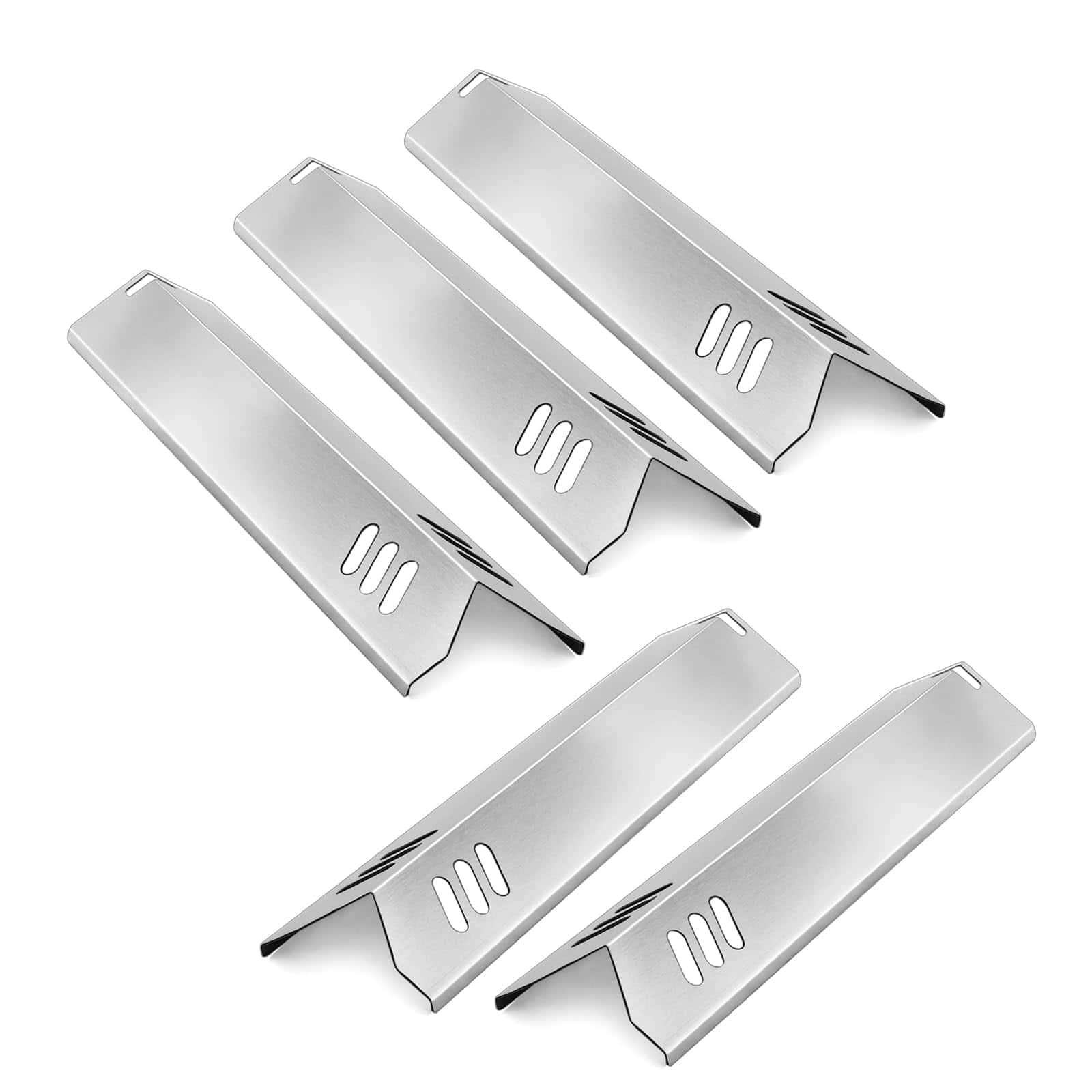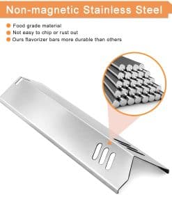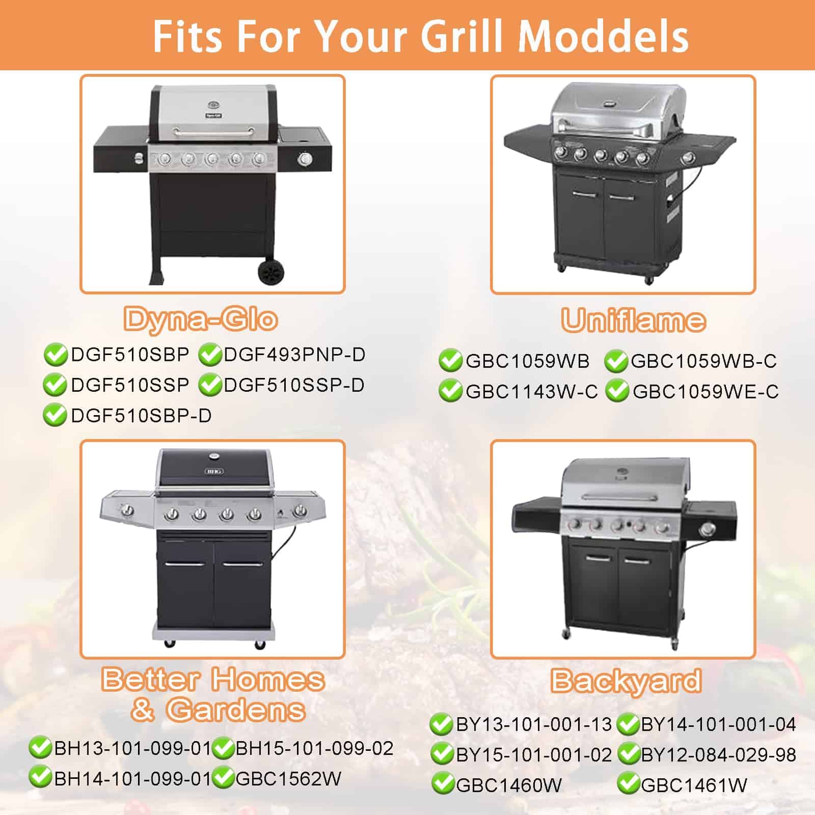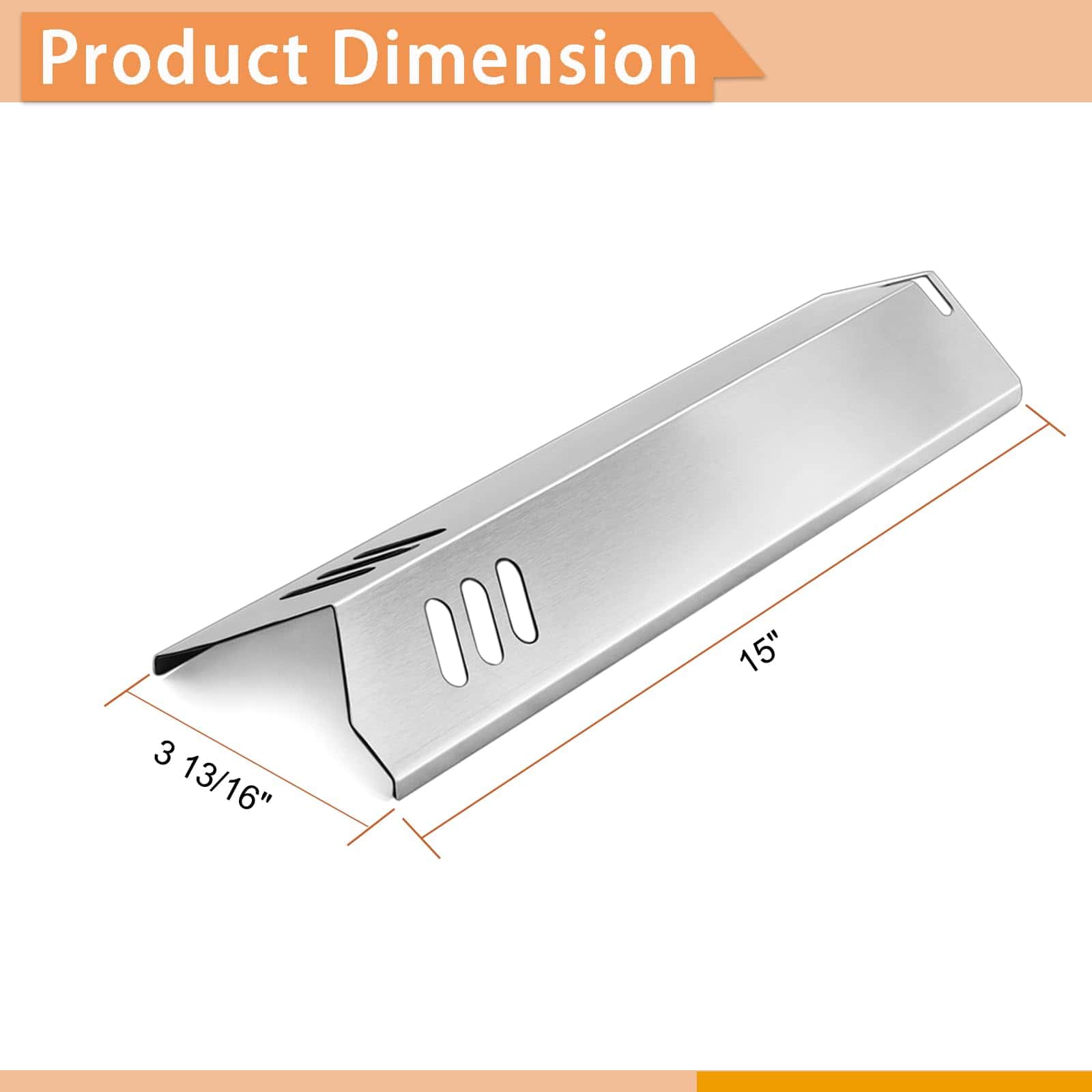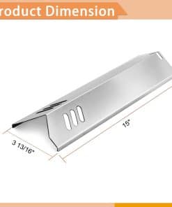 1. DIMENSIÓN Y PAQUETE – 15″ x 3 13/16″; 5 Pack Grill Heat Plate; Nuestras piezas de parrilla están hechas de acero inoxidable premium duradero, bien diseñadas y construidas para durar, mucho más sustanciales y gruesas que las demás. Marca y modelos son solo referencia, por favor mida el tamaño antes de comprar. 2. Placa Calorífica de Reemplazo para Dyna-Glo DGF510SBP, DGF510SSP, DGF510SSP-D, Dyna-Glo DGF510SBP, DGF493BNP, DGB494SPB. 3. Escudo de Calor de Reemplazo para Uniflame GBC1059WB, GBC1059WB-C, GBC1059WE-C, GBC1069WB-C, GBC1143W-C, GBC1343WP-U. 4. Tapa de Quemador de Reemplazo para Backyard BY12-084-029-98, BY13-101-001-12, BY13-101-001-13, BY14-101-001-02, BY14-101-001-04, BY14-101-001-099, BY15-101-001-02, GBC1349W, GBC1486W, GBC1255W, GBC1355W-C, GBC1440WRSB-C, GBC1449-C, GBC1449W-C, GBC1449WBS-C, GBC1449WRS-C, GBC1460W, GBC1461W, GBC1462W-C, GBC1555W-C, GBC1562W-C. 5. Barra Flavorizer de Reemplazo para Better Homes & Gardens BH13-101-099-01, BH14-101-099-01, BH14-101-099-06, GBC1362W, GBC1562W, BH15-101-099-02, BH14-101-099-03; Tera Gear BG1686B5; Outdoor Gourmet FSOGBG1106, FSOGBG1107, GR2205501-OG-00, GR2215101-OG-00