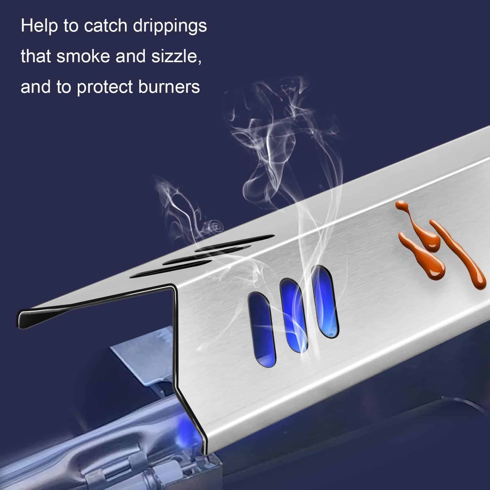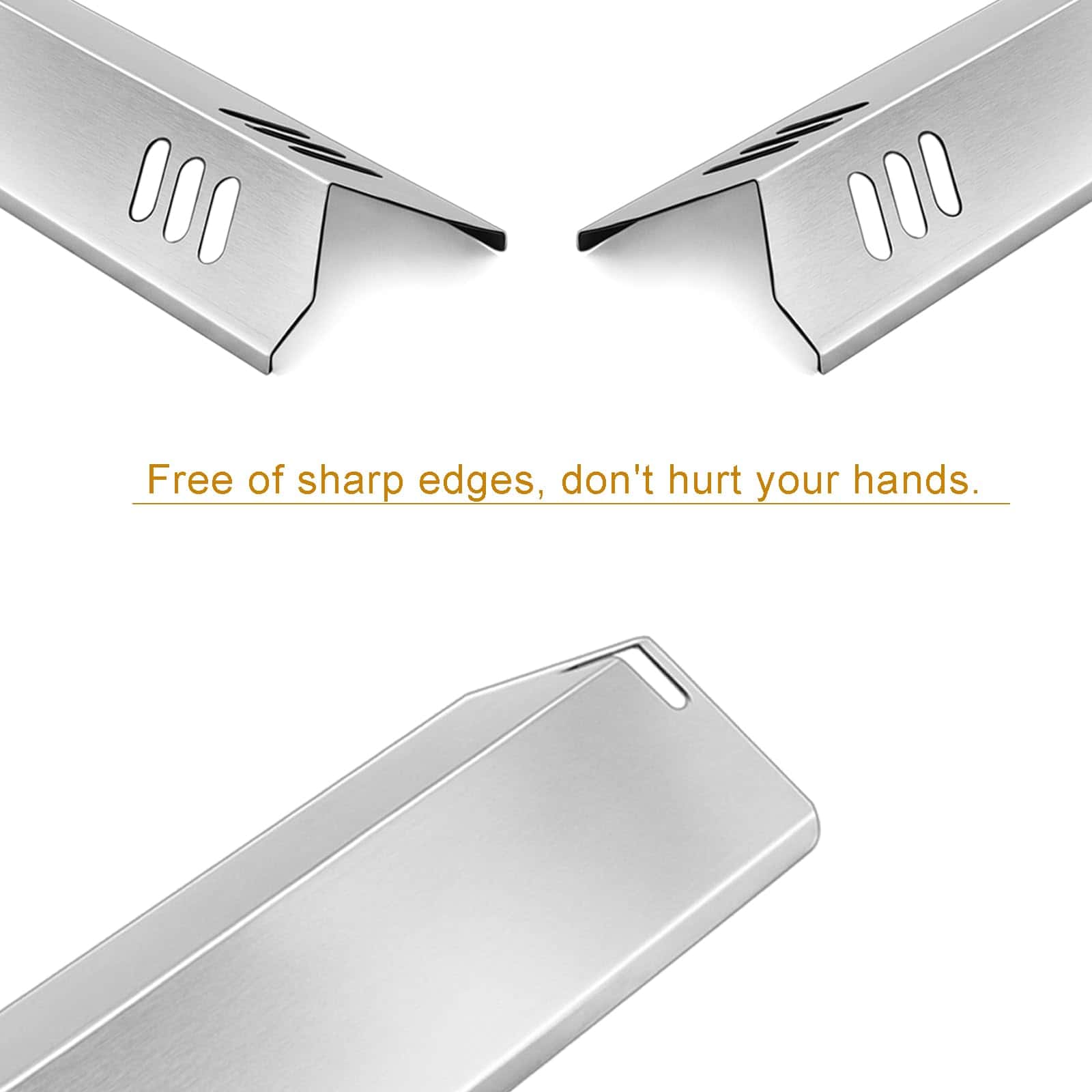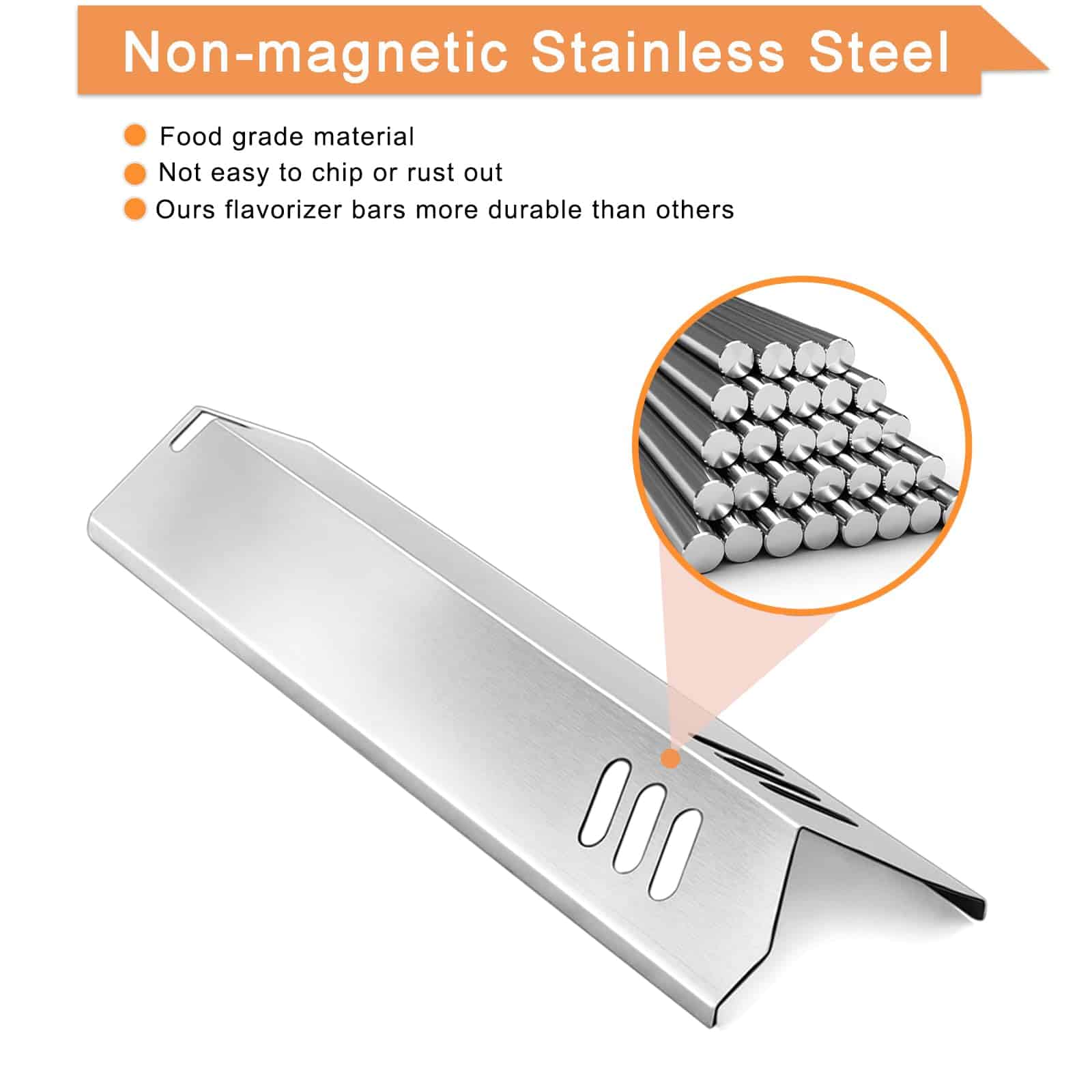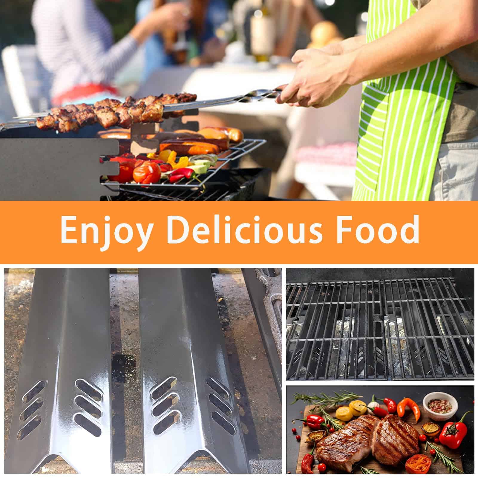 1. DIMENSIÓN Y PAQUETE – 15″ x 3 13/16″; 5 Pack Grill Heat Plate; Nuestras piezas de parrilla están hechas de acero inoxidable premium duradero, bien diseñadas y construidas para durar, mucho más sustanciales y gruesas que las demás. Marca y modelos son solo referencia, por favor mida el tamaño antes de comprar. 2. Placa Calorífica de Reemplazo para Dyna-Glo DGF510SBP, DGF510SSP, DGF510SSP-D, Dyna-Glo DGF510SBP, DGF493BNP, DGB494SPB. 3. Escudo de Calor de Reemplazo para Uniflame GBC1059WB, GBC1059WB-C, GBC1059WE-C, GBC1069WB-C, GBC1143W-C, GBC1343WP-U. 4. Tapa de Quemador de Reemplazo para Backyard BY12-084-029-98, BY13-101-001-12, BY13-101-001-13, BY14-101-001-02, BY14-101-001-04, BY14-101-001-099, BY15-101-001-02, GBC1349W, GBC1486W, GBC1255W, GBC1355W-C, GBC1440WRSB-C, GBC1449-C, GBC1449W-C, GBC1449WBS-C, GBC1449WRS-C, GBC1460W, GBC1461W, GBC1462W-C, GBC1555W-C, GBC1562W-C. 5. Barra Flavorizer de Reemplazo para Better Homes & Gardens BH13-101-099-01, BH14-101-099-01, BH14-101-099-06, GBC1362W, GBC1562W, BH15-101-099-02, BH14-101-099-03; Tera Gear BG1686B5; Outdoor Gourmet FSOGBG1106, FSOGBG1107, GR2205501-OG-00, GR2215101-OG-00