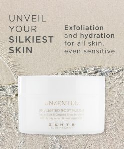 Descubre tu piel más suave y suave con este hidratante UNZENTED Body Polish. El azúcar y la sal trabajan juntos para pulir la piel a la perfección. Una rica infusión de manteca de karité y aceite de coco calma y protege la piel delicada de los elementos. El lujoso UNZENTED Body Polish se puede adaptar a todas tus necesidades de exfoliación: manos, pies, codos, rodillas y cuerpo. Usa UNZENTED Body Polish sobre la piel húmeda para una exfoliación suave, o úsalo antes de entrar en la ducha para más poder de pulido. Hay tres formas diferentes de usar este pulimento: 1 | Aplica sobre la piel completamente seca (o secada con toalla), usando el producto directamente en el área problemática como codos, rodillas, pies. Enjuague. 2 | ¡Pule como los profesionales! Para un pulido de cinco estrellas, aplica una capa de tu aceite corporal favorito de ZENTS sobre la piel seca (o secada con toalla) y luego aplica el Body Polish sobre él. El Polish no se disolverá en el Aceite como lo hace con el agua, y esto te da un pulido grueso. 3 | Para un pulido suave, aplica el producto sobre la piel húmeda. Esto proporciona una exfoliación suave para la piel sensible ya que el agua disuelve el azúcar y la sal.