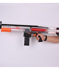 El Zhansheng Blaster es un lanzador de Nerf de alto rendimiento diseñado con potencia y precisión de primer nivel, con hasta 200 FPS (300 FPS al ser actualizado), construcción duradera de nylon inyectado y metal, un innovador sistema de cambio rápido de resorte para una personalización fácil de la potencia, y un diseño elegante de estilo francotirador con capacidades de disparo preciso, lo que lo hace perfecto para juegos competitivos y práctica de tiro al blanco; adecuado para jugadores de 14 años en adelante, con la recomendación de seguridad de evitar apuntar a la cara o a los ojos y usar gafas de protección. El paquete incluye: Lanzador 1 Cargador de 14 dardos 1 Dardos de medio tamaño 20 Tamaño del Lanzador: 31.5 x 11.8 x 2.1 pulgadas / 80 x 30 x 5.5 cm Peso del Lanzador: 3.95 libras / 1.79 kg + Resorte H7: 1.4 mm FPS: Aproximadamente 200 FPS Distancia de Disparo: aproximadamente 82 pies / 25 metros