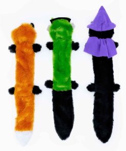 Nuestros clásicos Skinny Peltz están vestidos para asustar. Incluye un zorro zombi con sus huesos y cerebro a la vista. Un gato negro disfrazado de bruja con sombrero puntiagudo y capa mística, y una ardilla disfrazada como el monstruo de Frankenstein (¡es verde y tiene el pelo y las protuberancias en la cabeza jaja)!