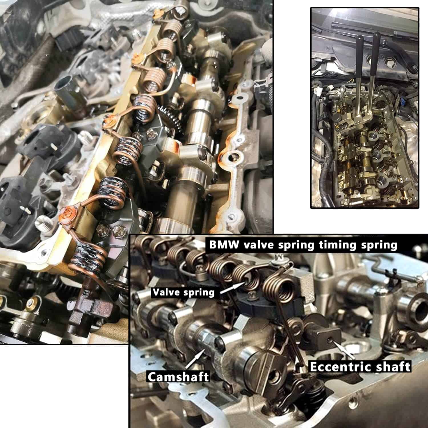 3. Aplicación: La herramienta de resorte de válvula del motor está diseñada para ajustarse a la desinstalación y montaje de resortes de presión de la palanca media del motor BMW N13, N20, N26, N51, N52, N53, N54, N55. Aunque no es el OEM original, garantizamos que la calidad y el rendimiento son mejores que la fábrica original, y al mismo tiempo le ayudamos a ahorrar una suma de dinero.