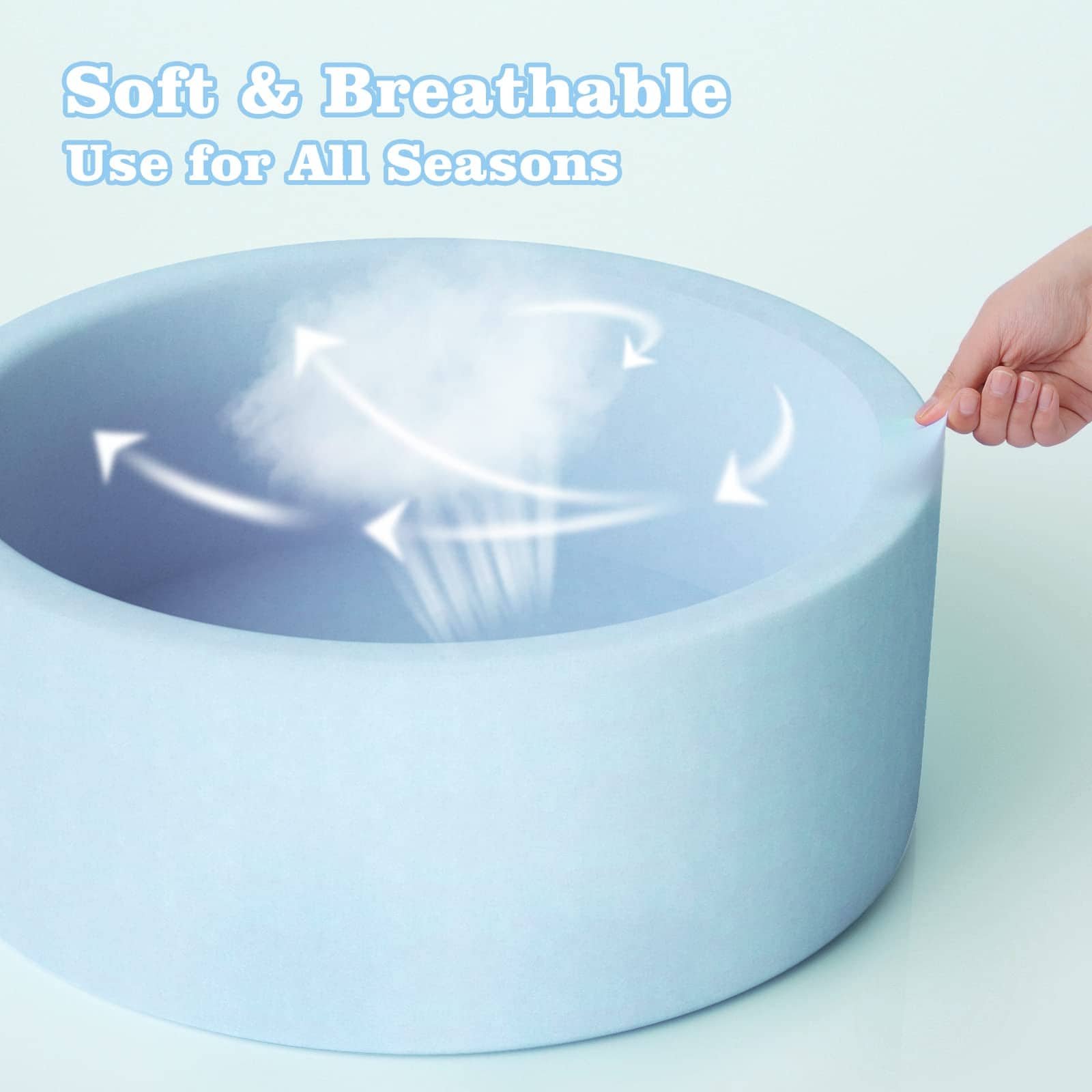 5. DEJE QUE LA MAGIA SE DESPLIEGUE: Para un envío inteligente, la piscina de bolas viene empacada al vacío y se expandirá a su tamaño final en aproximadamente 48 horas después de desempacar. Aún no completamente expandida. Utilice el ajuste de aire frío en un secador de pelo para expandirla fácilmente.