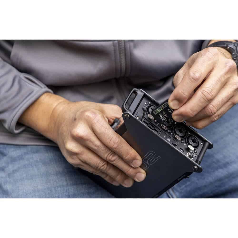Capture cada grabación de ubicación de forma rápida y limpia con el Zoom F8n Pro, un grabador de campo multitrack compacto con tecnología de 32 bits float para un rango dinámico inmenso que lo libera de recortes y ajustes manuales de ganancia. Ofreciendo grabación de 8 entradas / 10 pistas, convertidores separados para sonidos silenciosos y fuertes, y preamplificadores de alta calidad con conmutación de entrada de micrófono/línea, el F8n Pro empaqueta cantidad y calidad en un marco resistente que está más que listo para producción de películas, mezcla de sonido de producción/locación, grabación de efectos de sonido y recolección de noticias electrónicas. Rendimiento de calidad de estudio para profesionales exigentes. El F8n Pro puede acomodar todo tipo de micrófonos de condensador, así como señales balanceadas de nivel de línea a través de ocho entradas combo XLR-1/4″ Neutrik bloqueables. Ocho preamplificadores de micrófono de calidad de estudio con ganancia masiva (hasta 75 dB) y ruido ultra bajo (-127 dBu EIN) garantizan que tus fuentes de sonido serán amplificadas con precisión sonora. Además, los limitadores avanzados del F8n Pro anticipan el recorte antes de que se grabe. Entrada de Cápsula de Micrófono Zoom. Una entrada de cápsula de micrófono Zoom en el F8n Pro acomoda la línea de cápsulas intercambiables de Zoom (disponibles por separado) en lugar de las entradas 1-2.