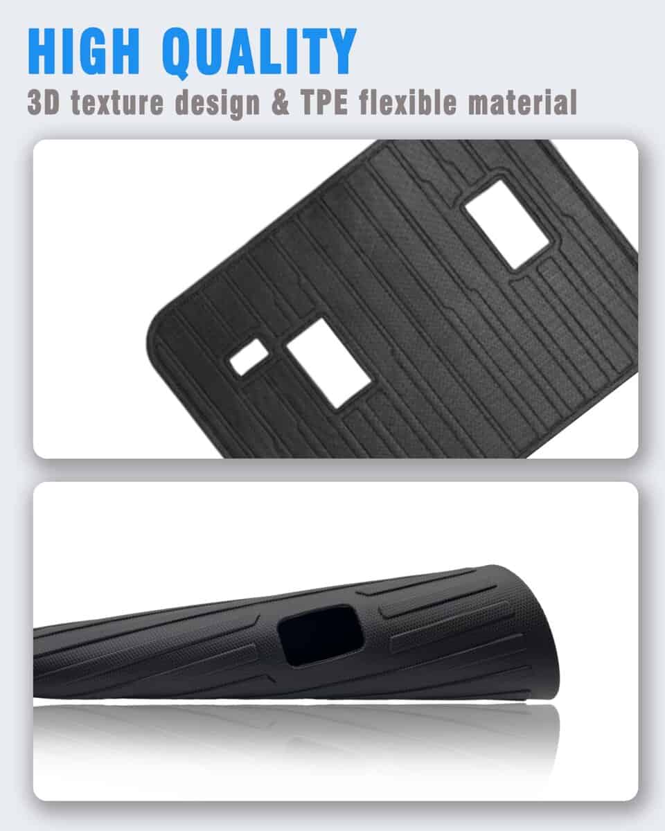 3. Material: Hecho de material TPE flexible de alta calidad, resistente al agua, resistente a los arañazos, resistente a la corrosión, no tóxico y respetuoso con el medio ambiente, fácil de limpiar.