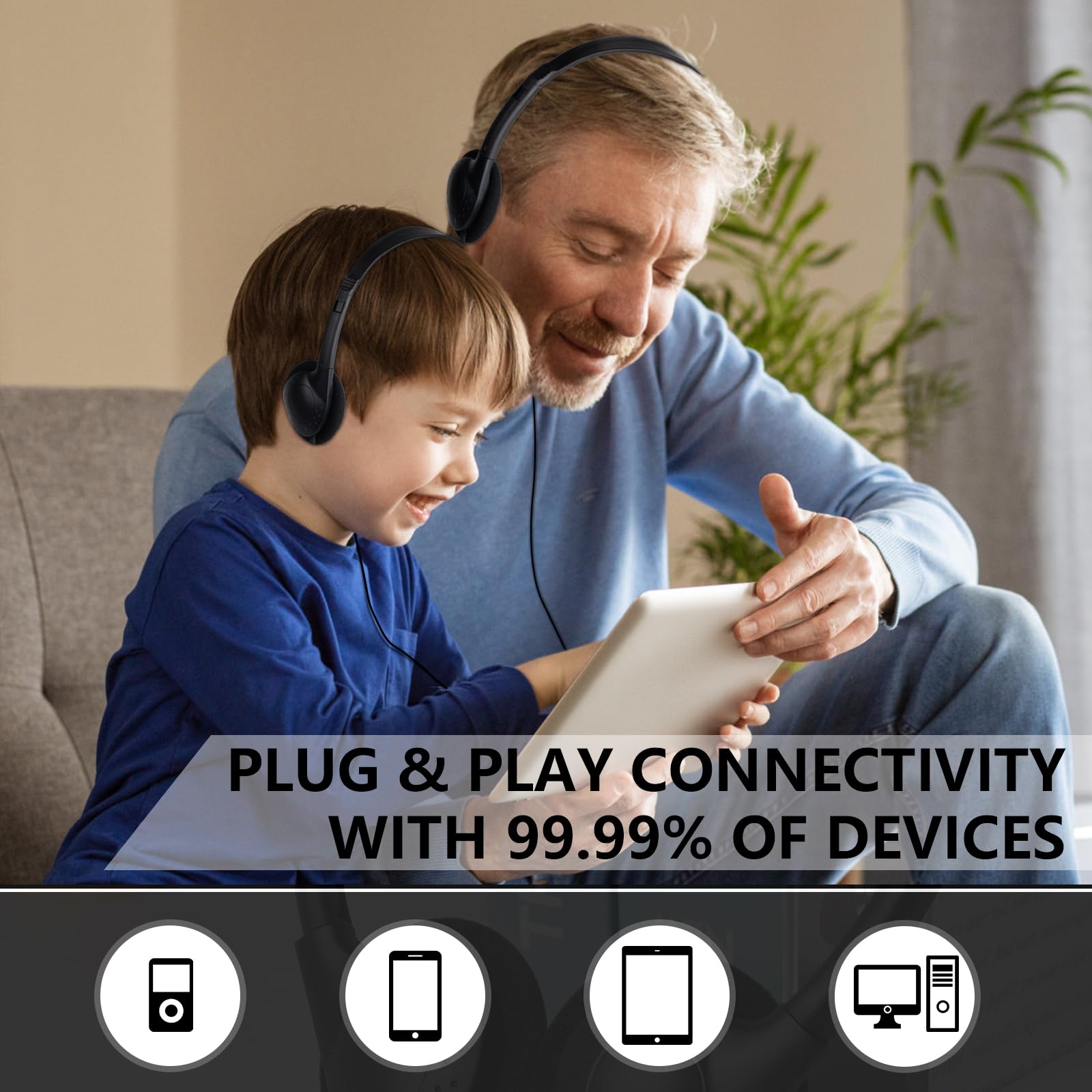 5. Conector de Auriculares Versátil: Los auriculares para niños en lote son compatibles con dispositivos de toma de 3.5 mm que funcionan con la mayoría de los teléfonos celulares, computadoras, laptops, equipos de fitness, que son buenas opciones para uso en el aula y pruebas escolares, centros, hoteles; Con estos 50 auriculares en lote, puedes poner tu aula en el camino del aprendizaje de inmediato.