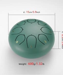 Formas de disfrutarlo Con las manos o mazos. Tocar con las manos requiere más fuerza y una ubicación más precisa, por lo que usar mazos es su primera opción (especialmente para los recién llegados). El sonido bajo el mazo será más penetrante, puro y etéreo. Sostenga el mazo a 1/3 del camino y golpee el centro de la lengua y obtendrá un sonido perfecto. Si hay algo de «ruido» durante la reproducción, se debe principalmente a golpear el lugar equivocado. El tambor de lengua tiene un tono etéreo y hermoso que puede ayudar a las personas a olvidar sus preocupaciones, expandir sus mentes y mejorar su salud física y mental. Puede tocarlo en cualquier lugar, relajar su mente y cuerpo en cualquier momento y brindar un gran espectáculo a todos. Tocar el tambor de lengua es una colección de filosofía, religión, cultura y arte. Es ideal para yoga, meditación y zen. Es fácil olvidar sus preocupaciones tocando este tambor de lengua, lo que lo convierte en un regalo maravilloso para su persona favorita. No importa cuál sea su habilidad o experiencia musical, este tambor de lengua es fácil de tocar. El instrumento viene con una bolsa de terciopelo para guardarlo y transportarlo fácilmente.