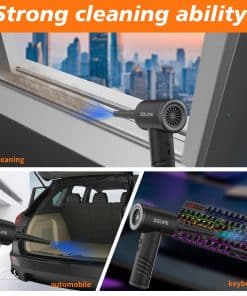 Este soplador de aire comprimido de ZZLIFE es la solución perfecta para mantener limpios tus dispositivos electrónicos y otros equipos. Con 3 velocidades ajustables hasta 55000 RPM, es capaz de expulsar el polvo y la suciedad de lugares difíciles de alcanzar. Su diseño compacto y portátil lo hace ideal para llevarlo a donde sea que se necesite una limpieza rápida. Con una batería recargable de 6000mAh, ofrece un rendimiento duradero y confiable. Además, su potente ráfaga de aire garantiza una limpieza efectiva sin dañar los componentes electrónicos. ¡Hazte con este soplador de aire ecológico y eficiente de ZZLIFE para mantener tus dispositivos impecables en todo momento!